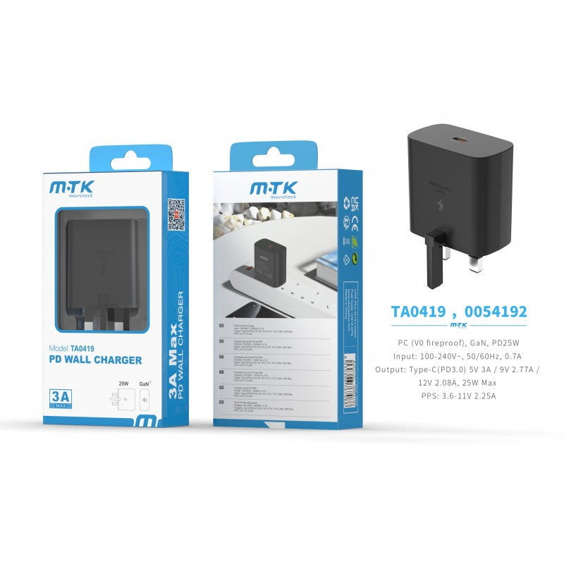 TA0419 25W PD Wall Charger, without cable, 5V 3A, Black