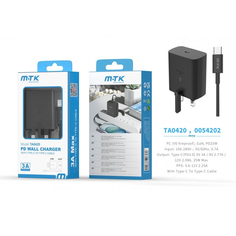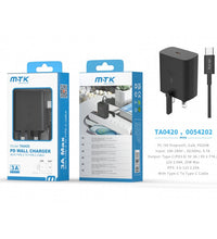 TA0420 25W PD Wall Charger, with TypeC to TypeC cable, 5V 3A, Black