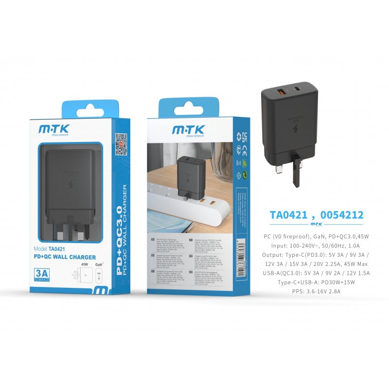 TA0421 45W PD Wall Charger, without cable, 5V 3A, Black