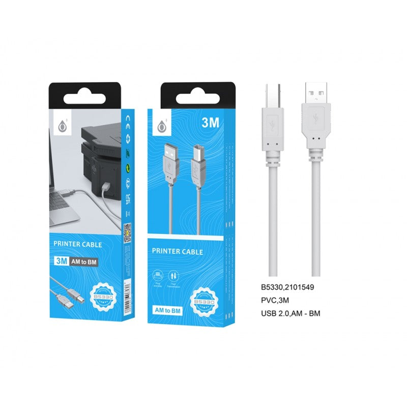 B5330 Printer USB Cable 2.0 AM to BM, 3M, Grey