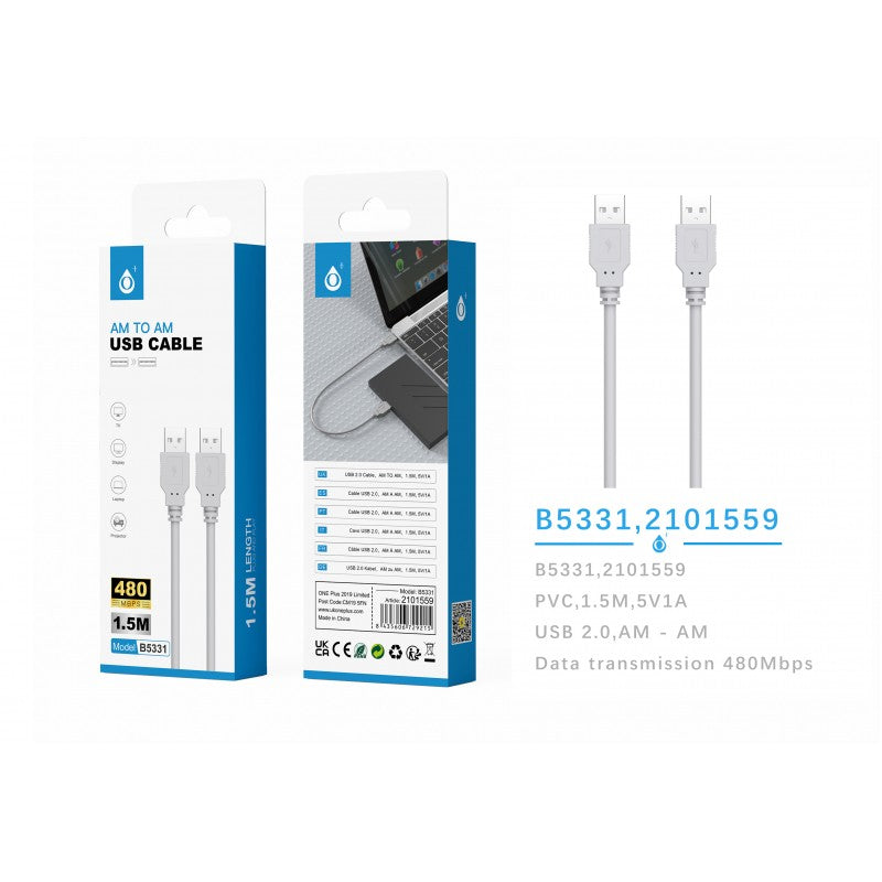 B5331 USB Male to USB Male Cable 2.0 AM to AM, 1.5M, Grey