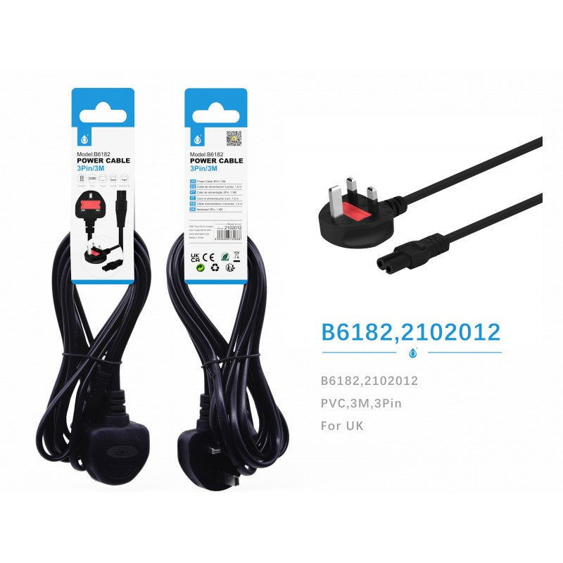 B6186 UK Charge Cable for Laptop, 3M, Black