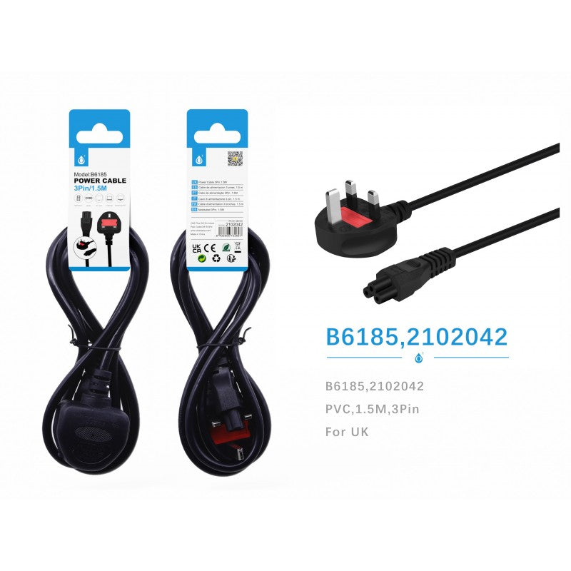 B6185 UK Charge Cable for Laptop, 1.5M, Black