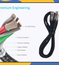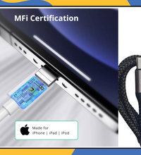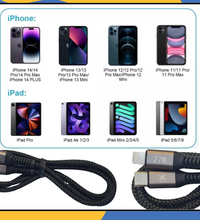 Get the speed, strength & style you deserve with this premium-quality USB cable – perfect for all your Apple devices. Built with durable braided nylon, this cable offers 27W fast charging, maximum protection, and long-lasting performance!