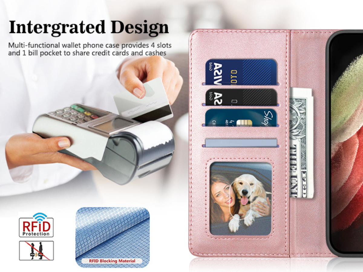 Premium Leather Flip Wallet Case for Samsung S8 & S21 & S21FE Ultra – Magnetic, Shockproof & Stylish