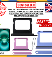 Apple iPhone 16 Physical SIM Tray Replacement | OEM Dual SIM Slot | White, Pink, Black, Blue, Green - A3296