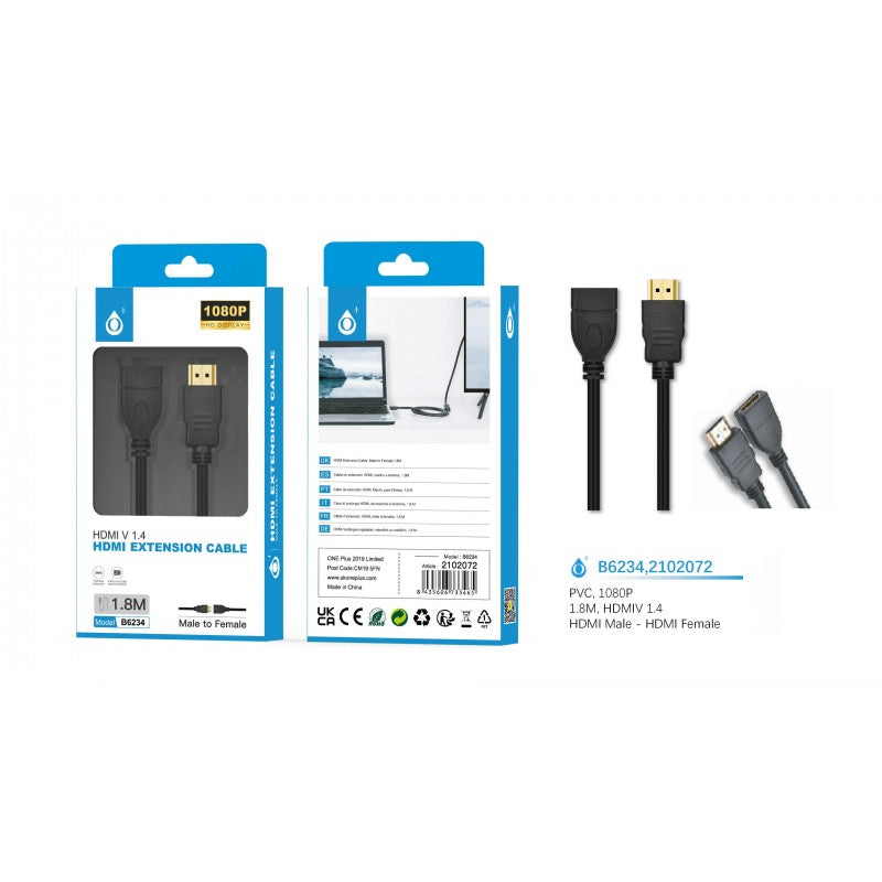 B6234 HDMI M/F Extension Cable, V1.4, 1080P, 1.8M, Black