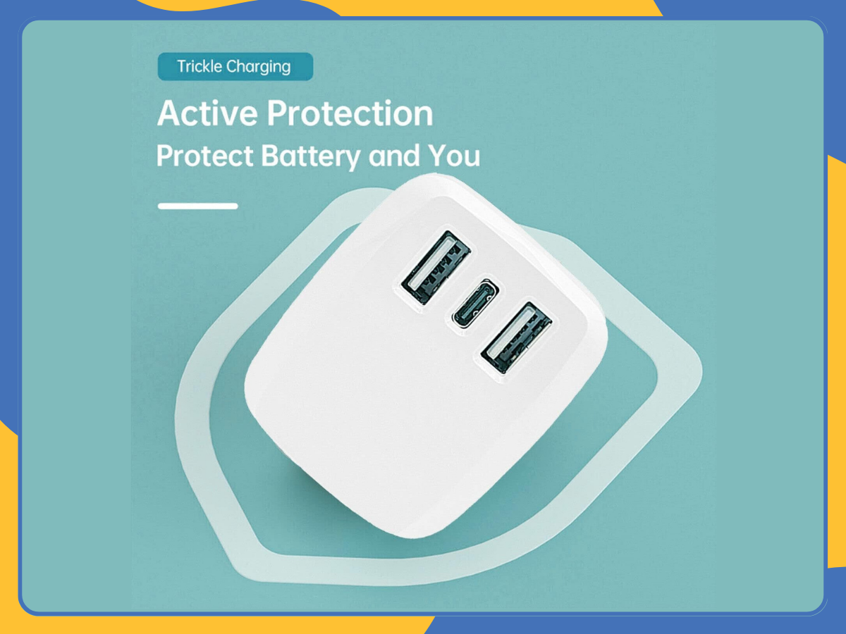 Two USB slots and One USB-C slot to charge 3 devices simultaneously