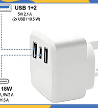 🔌 20W Dual USB / USB-C PD Mains Charger (2 x USB, 1 x USB-C) 3Amp is made for your smartphone, tablet and all USB fitted gadgets. High performance to meet high demands UK 🔌